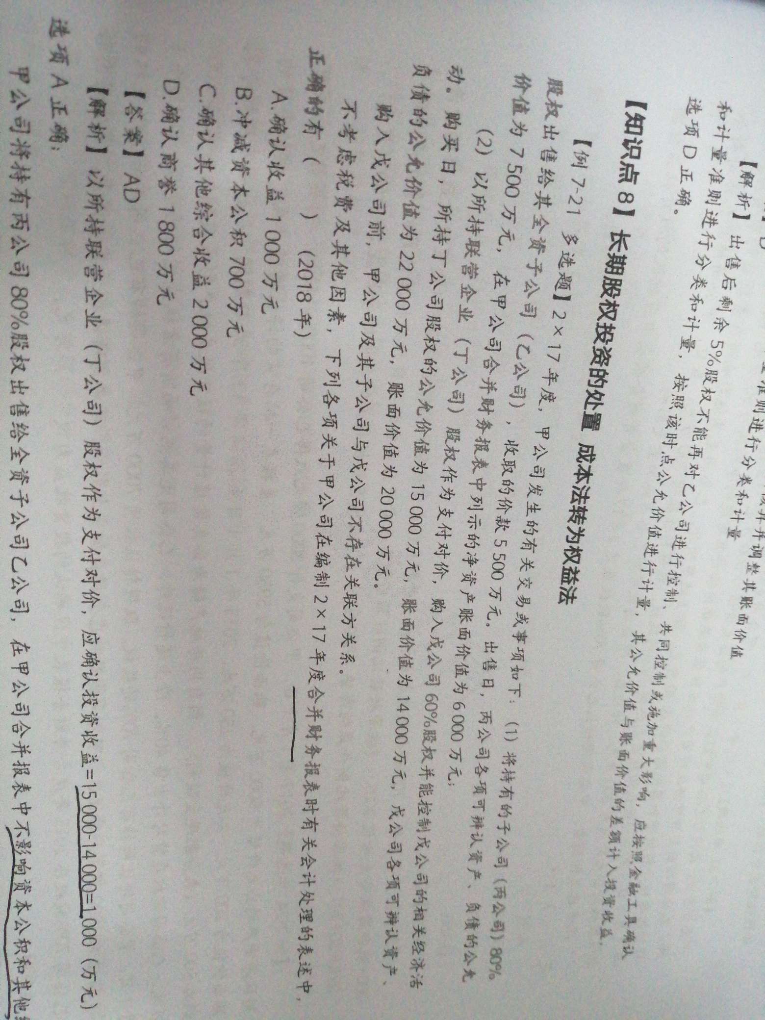 老师,这个题目甲公司将持有丙公司80%股权出售给全资子公司给乙公司的怎么进行会计处理?分录怎么编写?