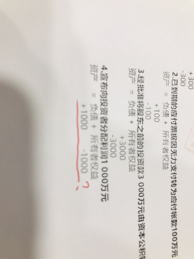 第4个例子,为什么不是负债-1000,所有者权益+1000?