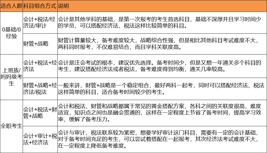 - 注会考试怎么搭配科目?